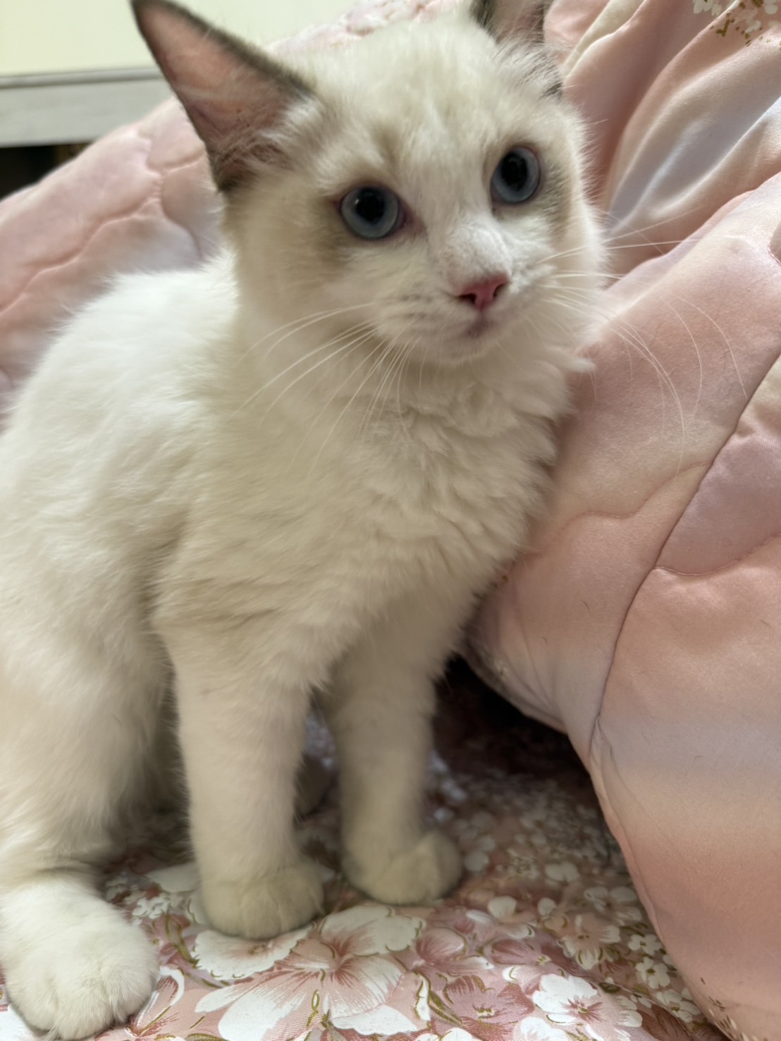 3-month-old ragdoll cat and 5-year-old black Shiba Inu