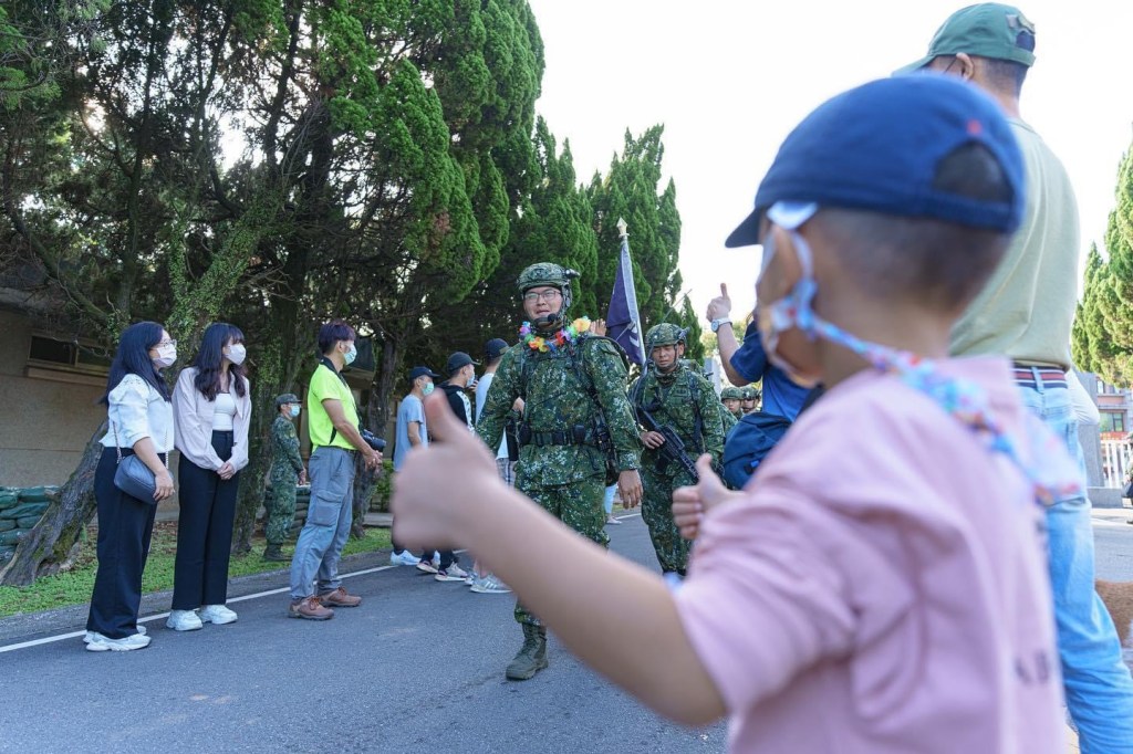 上圖是我參與戰術任務訓練(以前叫山隘行軍)經歷12天11夜凱旋的照片,我是戴花圈的那位。